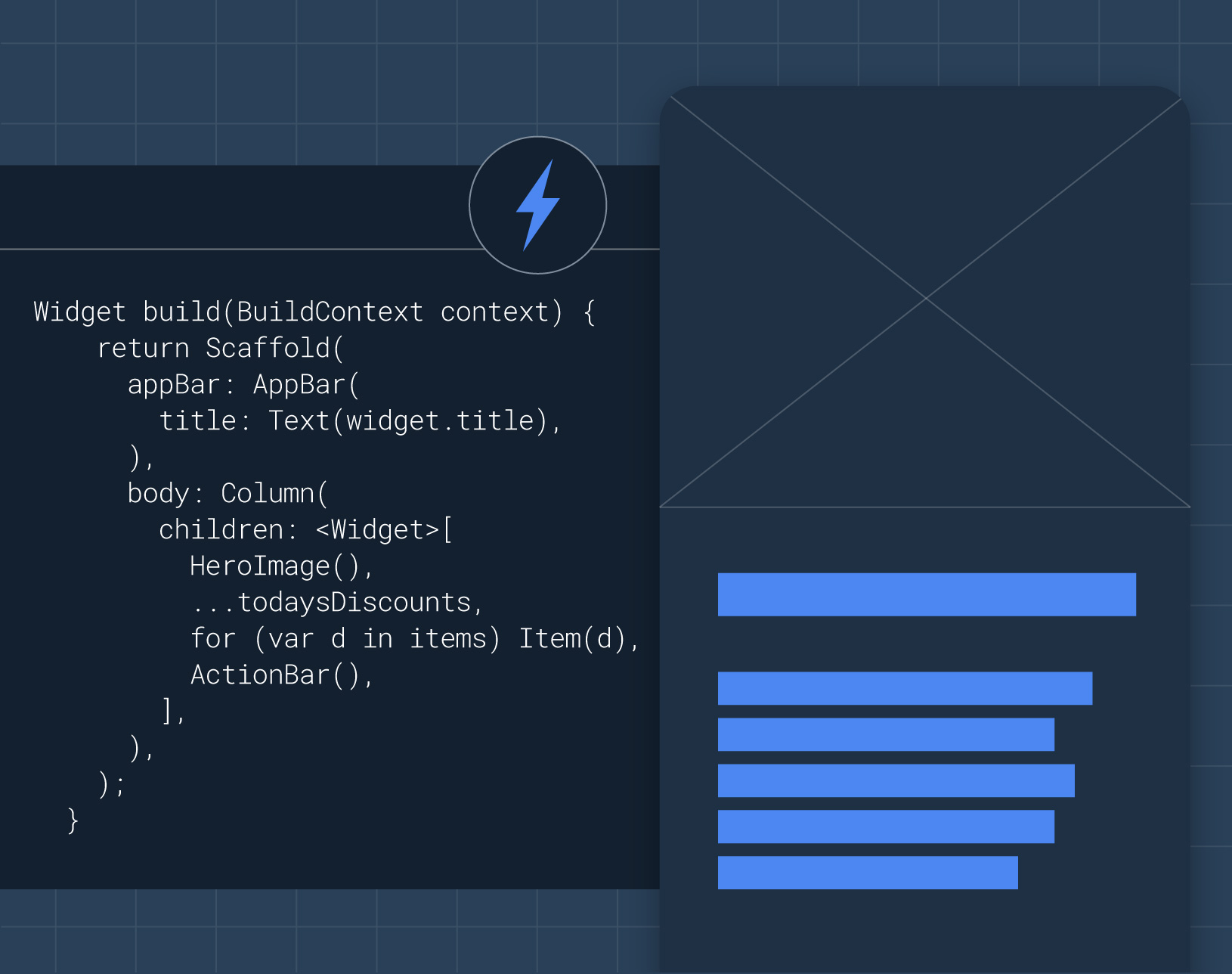 A programming language optimized for building user interfaces with features such as the spread operator for expanding collections, and collection if for customizing UI for each platform